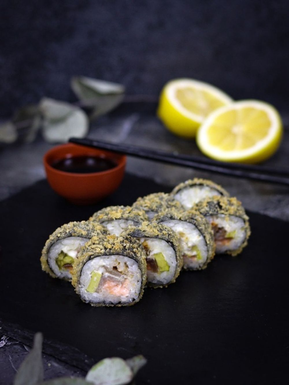 Рис, лосось, угорь, креветка, тунец, авокадо, мука, сухари (250гр)