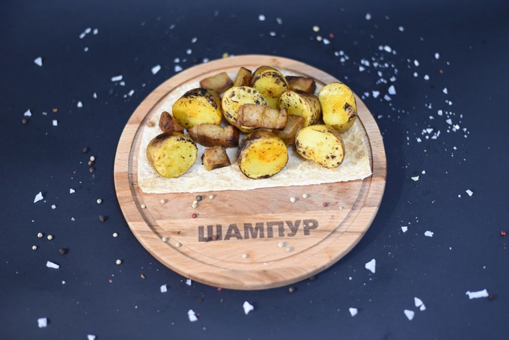Молодой картофель и маринованное, свиное сало, обжаренный на мангале. ЛАВАШ, ИДЁТ БЕСПЛАТНО.250гр.ВЕС УКАЗАН В СЫРОМ ВИДЕ