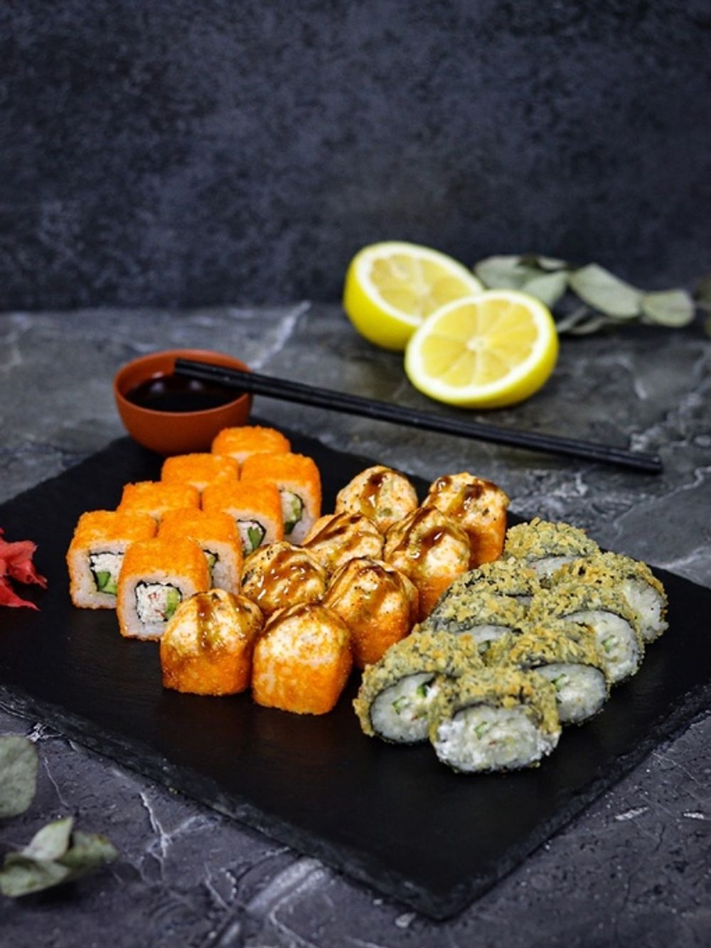 Ролл «Калифорния», ролл «Феникс», ролл «Хот» с крабом (750гр)